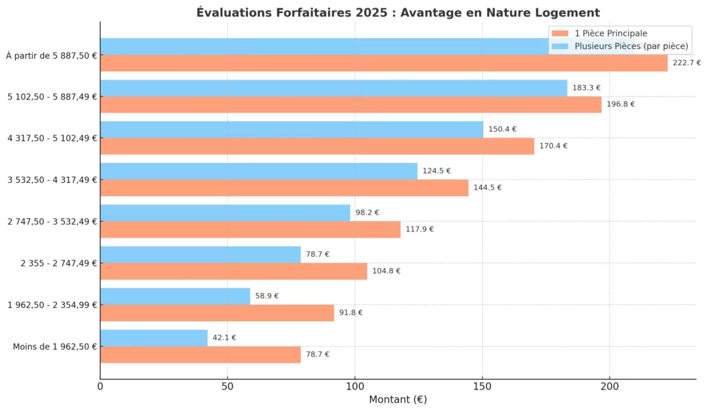 L’avantage en nature logement est destiné aux salariés qui bénéficient d’un logement fourni par leur employeur. En 2025, l’évaluation forfaitaire dépend de deux critères principaux :