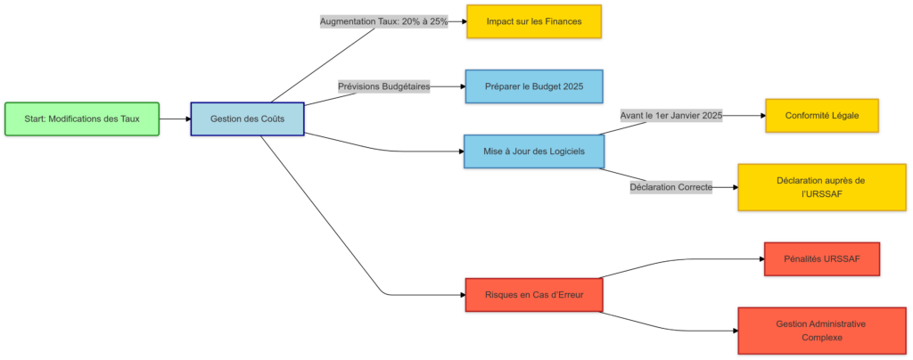 Les modifications de taux, surtout les augmentations, entraîneront une hausse des charges sociales. Les entreprises doivent donc prévoir ces changements dans leurs budgets 2025.